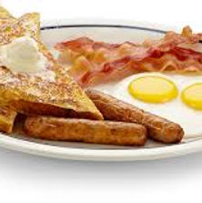3 eggs, ham, bacon, sausage, French toast and pancakes.